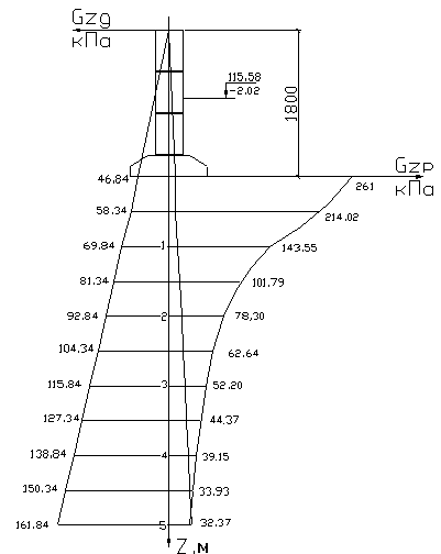 Таблица 4.9. Вычисление осадки основания