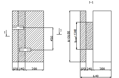 Так как стена здания многослойная и состоит из четырех слоев, один из которых слой утеплителя из минераловатных плит то этот слой в расчете несущей способности не учитывается. Отдельные слои стены соединены между собой жесткими связями. Жесткими называются связи, если при любом теплоизоляционном слое расстояние между осями вертикальных диафрагм из тычковых рядов кирпичей, соединяющих конструктивные слои не превышает 120 см и 10h, где h – толщина более тонкого конструктивного слоя.