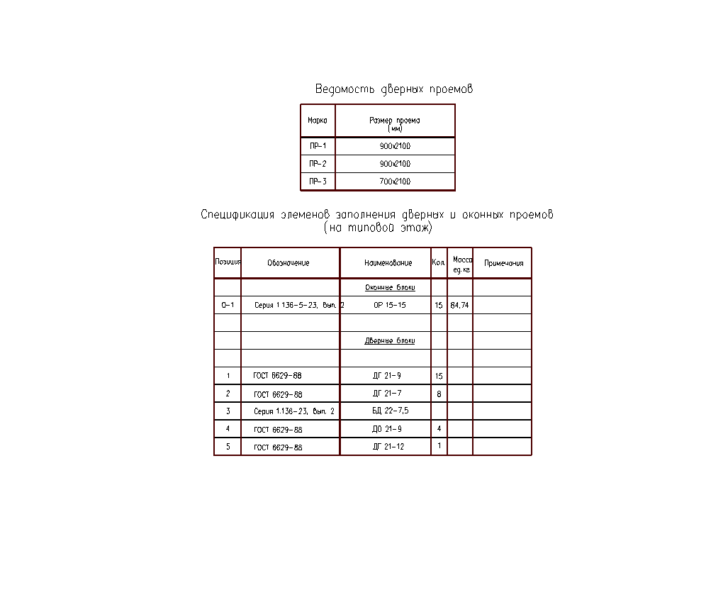 Спецификация оконных и дверных проёмов представлена в таблице 3.3