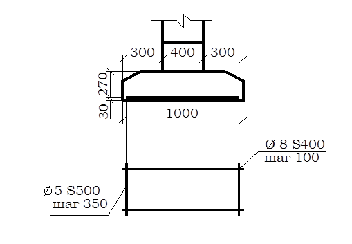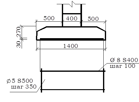 Принимаем арматуру Æ8 S400(As=5,03см2) с шагом 100мм. Распределительную арматуру принимаем Æ5 S500 с шагом 350мм.