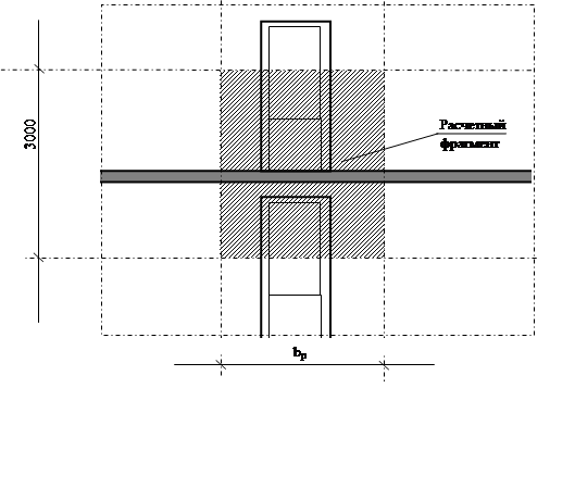 Рис.2.5. Расчетная схема фрагмента наружной стены здания для определения приведенного сопротивления теплопередаче участка с балконными дверями (вид со стороны помещения)