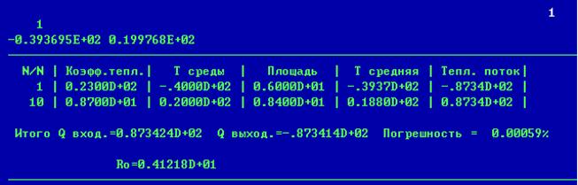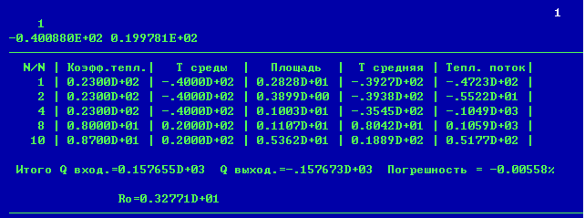 Пример распечатки результатов расчета приведенного сопротивления теплопередаче фрагмента наружной стены без проемов