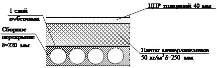 Крыша - чердачная с «холодным» чердаком, сборные железобетонные плиты перекрытия с утеплением минераловатными плитами плотностью gо = 50 кг/м3 толщиной 250 мм и заливкой поверх цементно-песчаным раствором толщиной 40 мм.