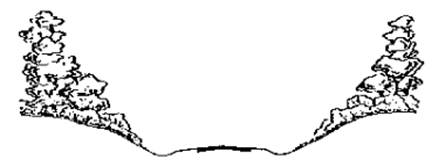 Рис. 5. Озеленение выемок в открытой местности с устройством кулис озеленения при входе в выемку