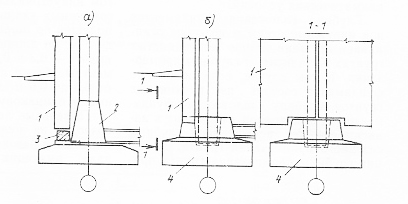 б)столбчатые или отдельно стоящие, представляющие собой ряд отдельных опор, устанавливаемых под стойками или колоннами, а также под стенами, опертыми на фундаментные балки (рис.2)