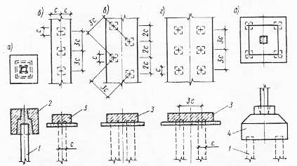 в] свайные, устраиваемые из свай, опускаемых в грунт (рис.3)