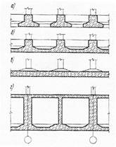Разновидностью сплошных фундаментов являются так называемые ребристые и коробчатые конструкции {рис.5)