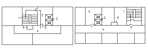 Рис. 1. Планировки лестнично-лифтовых узлов.