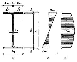 Размеры полки определяют согласно сортамента. При этом необходимо учитывать требования общей устойчивости балки и местной устойчивости стенки.