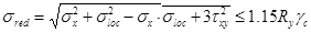 На действие приведенных напряжений в месте приложения сосредоточенных сил