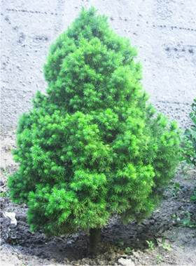 В нашем саду есть ель канадская «Коника». Во взрослом состоянии она достигает не более 3-ех метров, имеет строго пирамидальную форму и мягкую ярко-зеленую хвою.