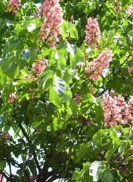 Также на участке планировалось посадить несколько высоких, больших растений, для этой цели был выбран конский каштан. Это высокое дерево до 25-30 м высотой, живущее несколько сот лет, с красивыми сложнопальчатыми листьями. Цветки собраны в красивые свечевидные соцветия длиной 25-30 см. Они довольно крупные, до 2 см в диаметре, белые с красными крапинками. Во время цветения деревья конского каштана обыкновенного необычайно красивы.