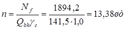 N = 2Vmb + gfg gn gc lc = 2×1194 + 1,05×0,95×0,7×5,8 = 2392,05 кН