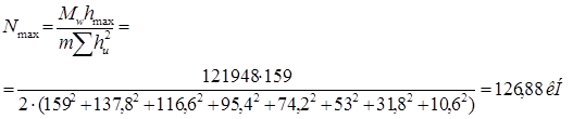 где hmax – расстояние между крайними рядами болтов, hmax = 159 см;