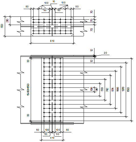 Предполагая в каждом ряду по 4 болта, найдем площадь накладок с учетом ослабления, диаметр отверстия под болты d = 20 мм – d0 = 23 мм.