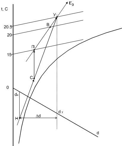 где Iу, tу, dу - параметры воздуха, удаляемого из помещения системой общеобменной вытяжной вентиляции;