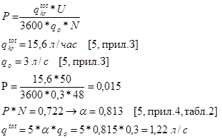 где qos=1,6 (л/с) – расход стояков от прибора с наибольшим водоотведением [5, прил. 2] для унитаза со смывным бачком