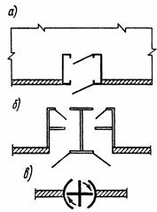 , то мерами защиты помещения от проникания холодного наружного воздуха являются тамбуры (а), шлюзы (б), вращающиеся двери (в) (рис. 1).