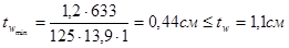 Толщину полки принимаем конструктивно tf = 20 мм, тогда высота главной балки h = 129 см.