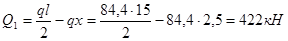 Определяем перерезывающую силу в сечении на расстоянии х = 2,5м: