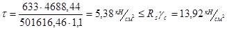 Значение касательных напряжений τ в сечениях изгибаемых элементов должны удовлетворять условию:
