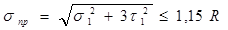Проверяем прочность сечения на совместное действие нормальных и касательных напряжений. В соответствии с энергетической теорией прочности, проверку производим по приведенным напряжениям: