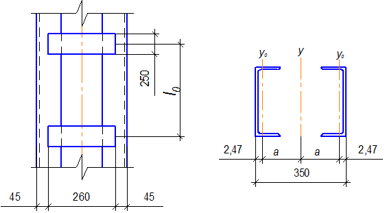 Проверяем устойчивость колонны по свободной оси, предварительно вычисляя геометрические характеристики