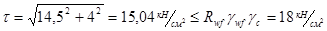 Проверяем прочность сварного шва от совместного действия перерезывающей силы и момента: