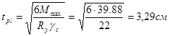 Для определения толщины плиты расчетный момент принимаем максимальный