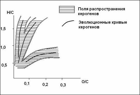 Классификация керогенов дана ван Д.Кревеленом, голандским ученым, крупнейшим специалистом в области химии полимеров. Она представлена в виде диаграммы на рис: 1.