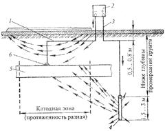 Катодная защита- этот вид защиты предусматривает придание газопроводу отрицательного потенциала относительно окружающей среды посредством помещения к нему источника постоянного тока. Отрицательный полюс источника тока присоединяется к газопроводу, а положительный - к заземлителю (аноду). При этом анодное заземление постепенно разрушается, защищая газопровод. Этот вид защиты применяется от электрохимической коррозии и блуждающих токов. Принципиальная схема катодной установки приведена на рисунке.