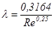 В зависимости от значения Re коэффициент гидравлического трения l определяется: