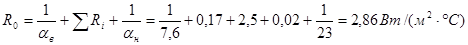 Следовательно определяем сопротивление теплопередаче проектируемой наружной стены: