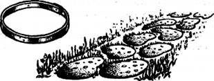 Второй вариант: внешний вид дорожки и опалубки показан на рис. 4. При ее устройстве в качестве опалубки используют металлические (желательно широкие) обручи от старых деревянных бочек. Можно изготовить кольца из обычной жести.