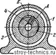 Рис.9. Пневматический планетарный вибровозбудитель: 1 — корпус, 2 — неподвижная ось, 3 — ротор, 4 — лопатка; А — рабочая полость, Б — выхлопная полость