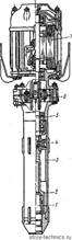Рис.12. Глубинный вибратор ИВ-90: 1 — сердечник, 2 — дебаланс, 3 — корпус, 4 — резинометаллическая шарнирная муфта, 5 — приводной шпиндель, в — резиновый амортизатор, 7 — электродвигатель