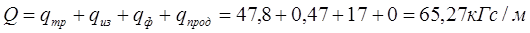 Q – вес единицы длины трубы с учетом изоляции, футеровки и перекачиваемого продукта (на воздухе):