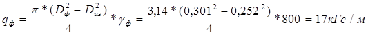 А – расчетная выталкивающая сила воды, действующая на трубопровод с учетом изоляции и футеровки (Архимедова сила), которая определяется по формуле: