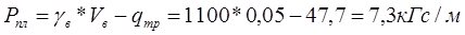 Pпл - распределенная нагрузка на участке, свободном от грузов–( положительная плавучесть);