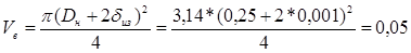 где Vв - объем воды, вытесненный 1 м трубы с учетом изоляции;