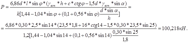 Несущая способность заглубленного винтового анкера диаметром d, длиной l, заглубленного в грунт с объемным весом γвст, на глубину h, равна: