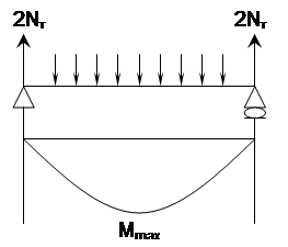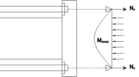 Мmax = Nн п / 8 * (c + h / 2) = 13340 /8 * (20 + 12.5 / 2) = 63523.31 кгс*см