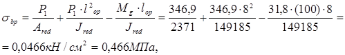Р1 – принимается с учётом потерь только s1, Р1= 346,4 кН;
