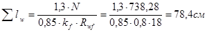 где 1,3 вводится для обеспечения надёжной работы сварных швов в случае перераспределения опорных моментов вследствии пластических деформаций. При 4-х стыковых стержнях и двусторонних швах длина каждого шва составит: