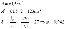 Подбор сечения сквозной колонны начинается с расчета на устойчивость относительно материальной оси Х. Задаем гибкость равной 50.