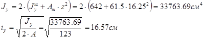 Определяем требуемые площадь сечения ветви и радиус инерции сечения относительно оси Х.