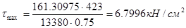 Qmax = qвб lвб × 0,5= 64,5239·5 × 0,5 =161,30975 кН ;