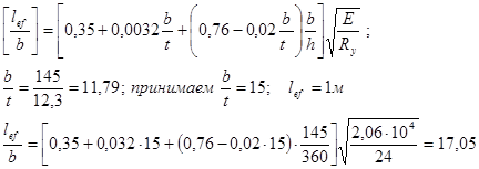 lef=b+2tef =14,5+2·2,63=19,76(см)– условная длина распределения нагрузи, где b=14,5-ширина полки балки настила;