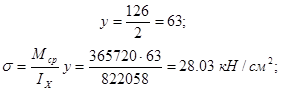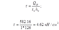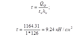 Проверка выполняется в сечении расположенном на расстоянии 0,96 от первого ребра жесткости, т.е. на расстоянии х1=1,75-1,26=0,49 м от опоры.