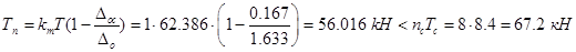 kc = ncTc / dc = 8 ∙ 8.4 / 0.1 =672.0 кН/см;